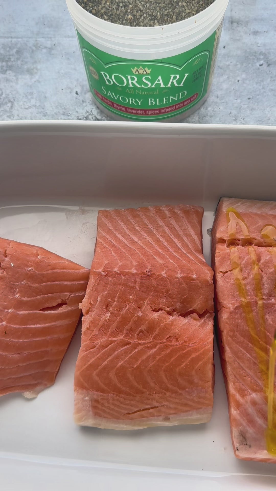 Borsari’s Savory Seasoning is pure sea salt that is infused with fresh basil, rosemary, thyme, garlic and balanced with ground pepper, nutmeg and lavender flowers.